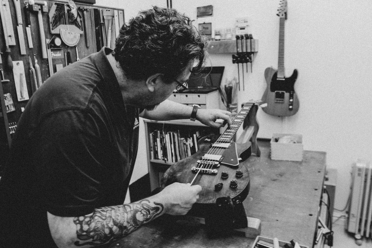 John has been repairing, maintaining and customising guitars for over a decade. String King includes among its regular clients: The Big Moon, Jez Coad, Kid Bookie, Dennis Greaves, Micko Westmoreland, Natale McCool, Don Mescall, Rites of Hadda, Rudimental, Smoke Fairies, Shriekback, The Subhumans, Ciara Thompson, and he has worked on instruments for over 1000 other players.